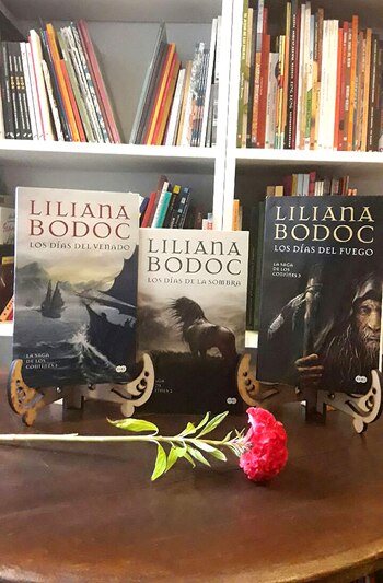 La saga está compuesta por tres libros: Los días del venado, Los días de la sombra, Los días del fuego. Los días del Venado, el libro que cambia la vida de Liliana es el primero. Logra encontrar el modo perfecto para crear un fantasy a partir del deseo de hablar sobre el genocidio que fue la conquista de América, pero sin quedarse atada a ninguna alegoría obvia. Sobre las tierras fértiles avanza una invasión que no tiene nombre. ¿Quiénes podrán darse cuenta del peligro que acecha? Los sabios, los artistas, los brujos… ¿Qué harán? Entre el Bien y el Mal, la guerra, y en medio, lealtades, traiciones, valentía, celos, ¿cómo pensar un futuro? La escritura es exquisita y poética. Nos recibe un mapa que nos pone en territorio. Muchas veces las sagas inspiradas en El señor de los anillos producen escozor, dolor de estómago, retoman sus historias, recrean sus mitos, reescriben lo mismo. Pero aquí no. "No hay falla", diría el I Ching. Liliana encontró mitos propios. Tomó la forma de la épica para contar lo que ella quiso, llena de magia e imaginación. Crea un universo poético propio.