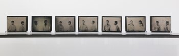 El pibe está preso además, como indica que esté de frente y perfil, y es parte de Braceros, una sección de la muestra Argentos, que la artista y arquitecta Cristina Piffer exhibe en la galería Rolf Art hasta mediados de octubre.