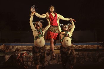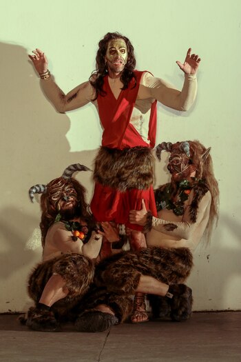 En la obra que David Picotto escribió junto a Guillermo de Santis –docente, traductor e investigador en Letras Clásicas– no hay detalle librado al azar. A la vez que los guiños son populares y localistas, las referencias son eruditas y exactas. Difícilmente olvidemos a Sileno, maestro de Dionisio (a cargo de Nelson Balmaceda), ni a los dos sátiros asustadizos que son sus hijos (Maximiliano Gallo y Rodrigo Gagliardino).