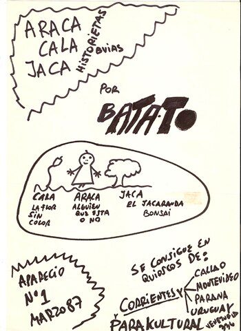 Historias obvias fue pensado por Batato como un fanzine, hojas breves que a modo de haikus recorren un mundo ignoto de grafismos. Son Araca, alguien que no está, Cala, la flor sin color y Jaca, el jacarandá bonsái.