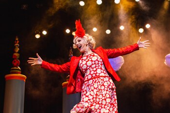 Humo, nubes y una escenografía colorida aportan a este espectáculo que se ubica siempre en un bello plano onírico. Con las actuaciones de Ana María Cores, Hernán Lewkowicz, Federico Rodriguez Salcedo, Silvana Paula Tomé y Gabriel Andres Illanes, la obra también cuenta con músicos en vivo, que interpretan las canciones de Sergio Dantí y aportan poderosos flashbacks a los juegos de la infancia, al despliegue enorme de la inocencia y una vital interacción con el público, en el cual los chicos pueden acercarse a los artistas y compartir algo de esa energía mágica que se logra recrear en el escenario.