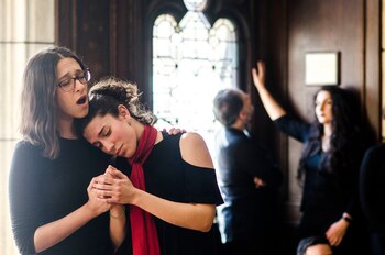 Milagro de la autogestión en tiempos del desfinanciamiento, la Compañía de Ópera del DAMus pone el acento en la intención pedagógica. A sus integrantes los guía la convicción de que el escenario puede funcionar a la manera de un aula expandida. Por eso se proponen garantizarles a los alumnos la experiencia de atravesar todas las etapas de un montaje operístico, y también la posibilidad de actuar, cantar e interactuar con el público, no sin cuestionar los protocolos solemnes que suele adoptar la interpretación lírica.