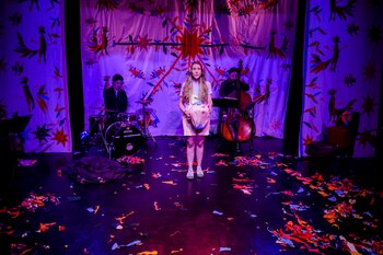 Y ya hacia el final del proceso creativo nos pusimos ambiciosos. Queríamos una obra que reflexione sobre innumerables temas: la identidad, la superficialidad, los modos de ver la muerte, el exilio y sus hijos, el destino de las niñas al convertirse en mujeres y de las madres al priorizar sus deseos. Y que lo haga desde un lugar lúdico y dinámico, flexible a una amplitud de público en quien dispare preguntas acerca de quiénes somos y cómo nos construimos como sociedad. Que lo haga desde un lugar singular, desde un musical singular, que encuentre al espectador embebido en un mundo musical casi sin darse cuenta. Y creo que ese objetivo, así como el de trabajar con un equipo único, quedó satisfecho.