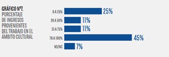 Si bien los encuestados responden a todo tipo de disciplinas, la mayoría pertenece a la música y al teatro; el 37% sostiene que su actividad cultural principal se vincula a la Enseñanza y, entre éstas, el 67% la ejerce de manera independiente. Un dato importante: el 56% de los encuestados vive de su trabajo en el ámbito cultural, percibiendo más del 50% de sus ingresos por esta tarea.