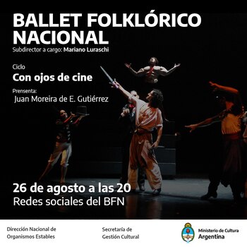 Desde la Dirección Nacional de Organismos Estables del Ministerio de Cultura de la Nación lo invitamos a disfrutar de las obras que brindarán el Ballet Folklórico Nacional y la Compañía Nacional de Danza Contemporánea, en esta última semana de agosto.