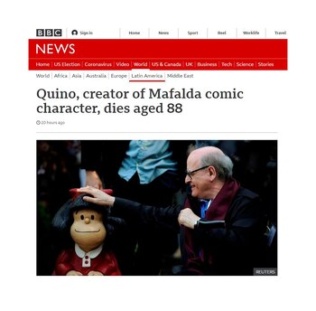 En México, El Universal también le rindió tributo como el colombiano El Tiempo, dos de los medios más importantes de cada país respectivamente. En Uruguay, El Observador recordó que la muerte de Quino se da “un día después de que su creación más icónica celebrara los 56 años de su primera publicación”.