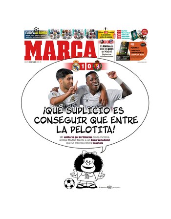 La popularidad del humorista es tan grande que la prensa deportiva, a través del madrileño diario Marca, también realizó un homenaje insertando a Mafalda en su portada con un "¡Qué suplicio es conseguir que entre la pelotita! para referirse al triunfo del Real Madrid por La Liga. Por su parte, ABC compartió un dibujo de Mafalda llorando y con almanaque del 2020 destruido. mientras que La Vanguardia señaló: “murió Quino, pero Mafalda será inmortal”.