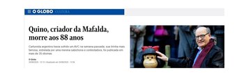 Por su parte, en Brasil, O Globo remarcó: “Quino recibió el apodo que lo hizo famoso en su infancia; Sus padres, españoles de Andalucía, eligieron el apodo para diferenciarlo de su tío, Joaquín, de quien heredó el nombre y el gusto por el dibujo”.