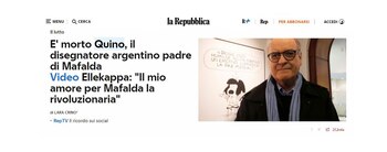 En Italia, La Repubblica realizó una destacada cobertura online bajo el título “Murió Quino, el dibujante argentino, padre de Mafalda”, además de material audiovisual.