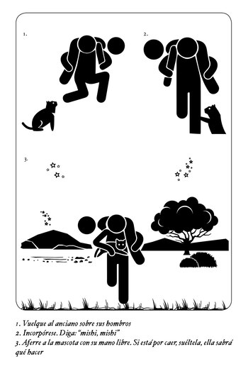 Lo imaginamos como una guía de autoayuda para los últimos supervivientes del planeta que, mediante consejos e ilustraciones, presenta técnicas para conservar la vida bajo diferentes escenarios de aniquilación. Desde instrucciones para fabricar bombas molotov, escapar de los algoritmos o construir refugios nucleares en casa hasta cómo obtener consuelo, pasando por tres maneras posibles para derribar un drone, qué hacer con las mascotas si debemos huir de nuestros hogares, tácticas de maquillaje para escapar de las cámaras de reconocimiento facial o de qué modo vencer a un zombi o un robot asesino en una pelea cuerpo a cuerpo.