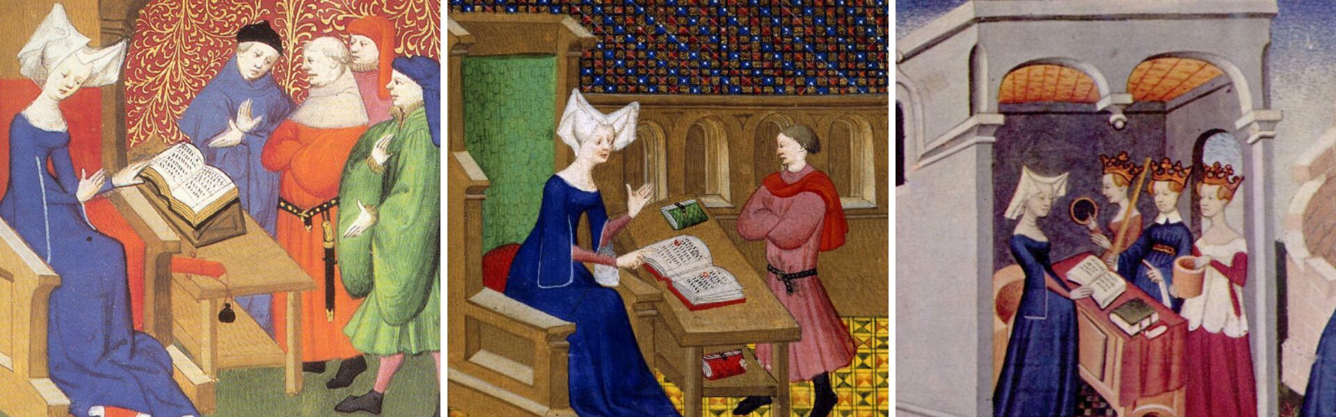 “Fue en el siglo XIV cuando por primera vez una mujer pudo ganarse la vida escribiendo. Esa mujer, Christine de Pizan, se convirtió en la primera escritora profesional de la historia gracias a su tenacidad y fuerza de voluntad. No sólo eso, Christine pasó a la historia como una gran defensora de los derechos de las mujeres en la sociedad”, escribe Sandra Ferrer Valero. Nació en Venecia en 1364 y murió en el Monasterio de Poissy alrededor de 1430.
