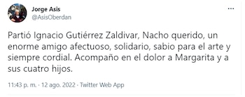“Ignacio Gutiérrez Zaldívar, quien fuera presidente fundador de la Academia Argentina de Gastronomía, falleció este viernes a causa de una neumonía prolongada, la cual hizo mella en sus deteriorados riñones, dañados a causa de la diabetes”, publicó el portal web oficial del Grupo Excelencias.