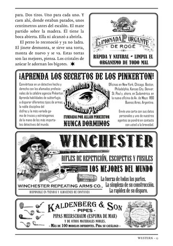 Muchas de estas historias fueron difundidas en folletines, que hallan un paralelismo con las mentadas publicaciones pulp, de papel barato y encuadernación sencilla. Salvaje Sur continúa en esa línea, e incluye publicidades (cómicas en su mayoría: “Publicite aquí y vuélvase rico”, bromea el editor en una de ellas) de jabones, rifles y otras vituallas que le confieren un tono apropiado para una publicación que bien podría haberse encontrado en un puesto de diarios de principios del siglo XX. Magistralmente realizadas por Diego Fiorucci y Javier Mattano, las ilustraciones que acompañan los relatos también suman a la atmósfera del Lejano Oeste/Salvaje Sur de la revista.