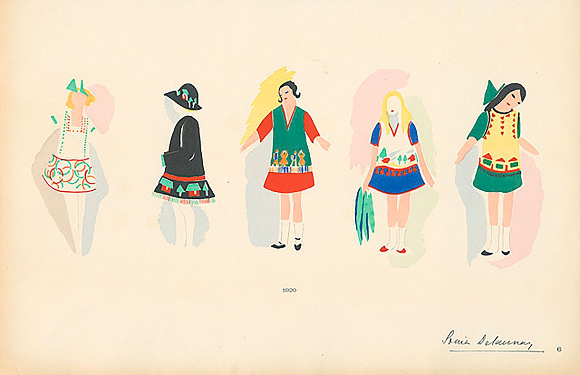 Para Sonia, el color era “la piel del mundo” y con ella quiso vestirse: diseñó su primer vestido simultáneo, confeccionado con formas geométricas hechas con trozos de tela coloridos. La prenda acentuaba de manera natural la forma y el movimiento de su cuerpo y borraba los límites entre su figura y el espacio por el que se deslizaba mientras bailaba.
