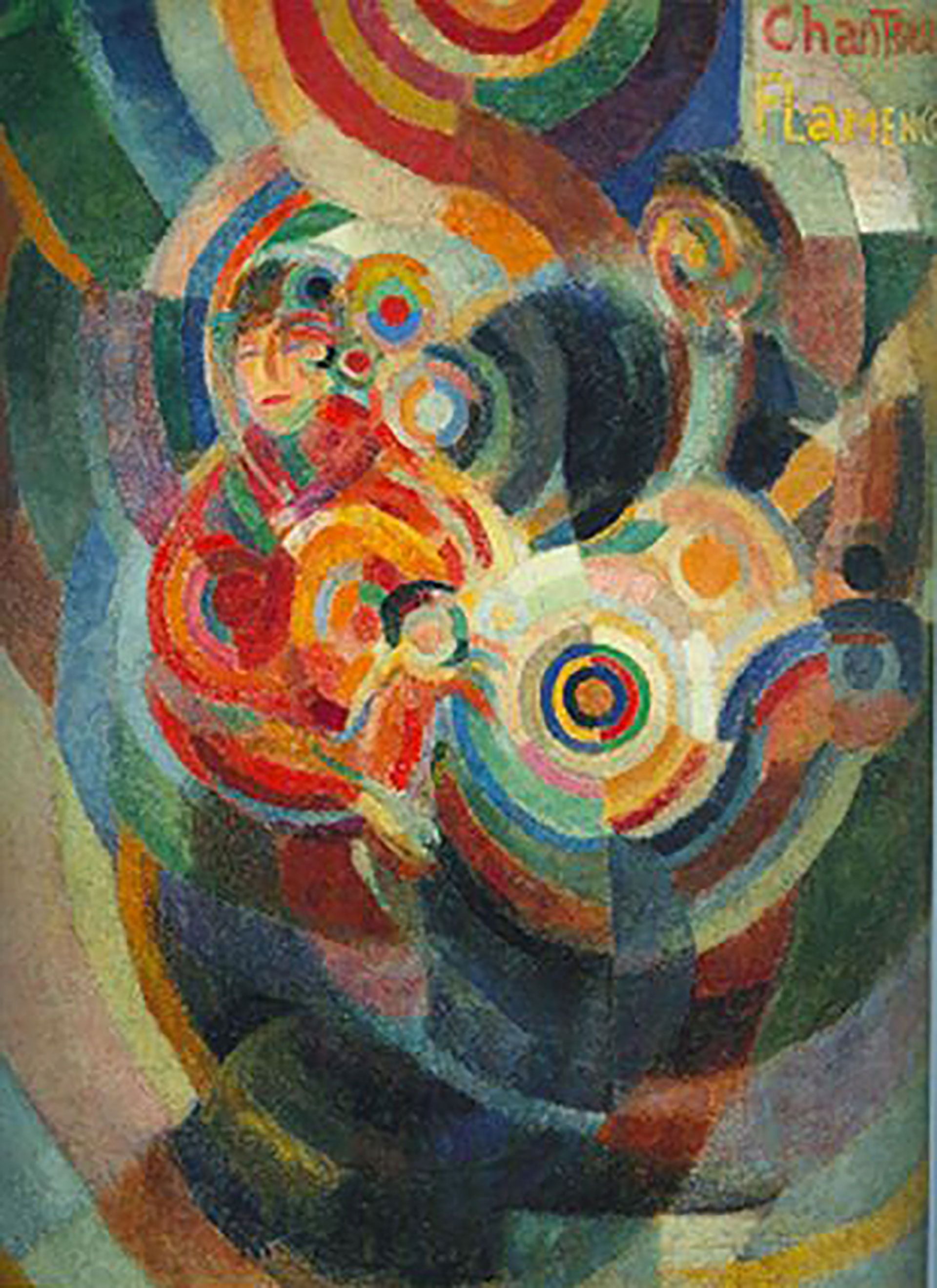 Los Delaunay fueron pioneros en la pintura abstracta. Sus investigaciones culminaron hacia 1912 en el Simultaneísmo –denominado “Orfismo” por el poeta Guillaume Apollinaire–, la exploración basada en el color y la forma que crea contrastes simultáneos de imágenes abstractas y expresivas. Combinaban colores primarios y secundarios (rojo con verde, amarillo con púrpura y azul con naranja) para obtener vibraciones visuales, y se interesaron por temas de la vida urbana y moderna –bailes, retratos, anuncios luminosos–, de modo que siempre estaban a caballo entre la abstracción y la figuración, algo que puede verse en sus pinturas relativas al arte flamenco.