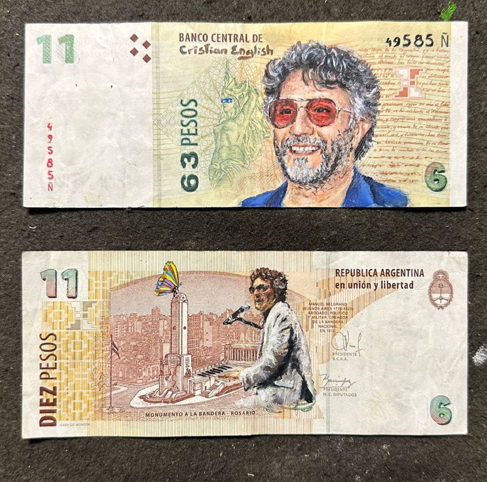 Hipnótico. El video viral donde un artista pinta a Fito Páez sobre un billete de diez pesos mientras suena una base simple de “Mariposa teknicolor” es hipnótico. Primero el pelo y la barba, todo sobre el rostro de Manuel Belgrano. Luego las gafas rojas, la sonrisa. Del otro lado, frente al Monumento a la Bandera, otro Fito tocando el piano. En la punta del monumento, una mariposa de múltiples colores. Todo es hipnótico. El artista se llama Cristian English.