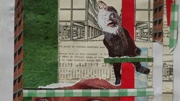 Estamos circulando por Avenida Perón a la altura del 4200. Vamos a cruzar la vía, pero nos bajan la barrera. No veo el tren que ya me aturde. Odio como toca bocina. ¿O se dice silbato? Siempre hay alguno que quiere cruzar, aún con la barrera baja. Por suerte el Muñe frena. Buena señal. Está bastante tranquilo hoy. Cuando empieza a pasar el tren, siento que alguien me está mirando. Giro mi cabeza a derecha e izquierda. Veo un vivero. Entre las flores hay un enano que me está taladrando con sus ojos como si quisiera agujerearme el cerebro. No puede ser. ¿Qué hace aquí? Es el enano que está en el jardín de los viejos, cerca de la puerta de entrada, como custodiando. Me mira fijo. Me doy cuenta de que no es el enano de los viejos. Es otro. Es el que estaba al lado del rosal en la casa de mi abuela. Era igualito.