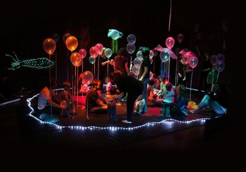 16 a 18 horas: Taller Caleidoscopio abierto en la nueva sala de Educación. Los participantes del taller preparan una actividad participativa para todas las familias con niños que visiten la sala.