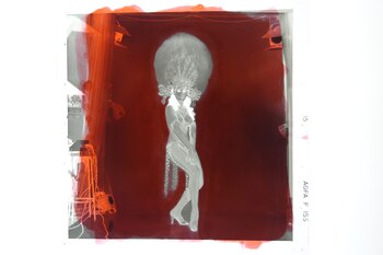 En Scarlata un grupo de pinturas rojas involucran una serie de personajes fotografiados sentados tomando café en algún bar porteño o parados esperando, retratados en este caso como a través de una lente infrarroja. Una serie de pinturas abstractas sobre lienzo y jean, agujereadas o intervenidas por cierres ciegos, dan cuerpo a otro tipo de traumas y placeres. Y un tercer grupo de imágenes fantasmagóricas dejan ver parejas de dopelgängers abrazándose o una mujer siendo atacada por cuervos.