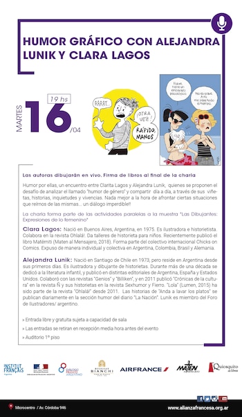 Así, los trazos de tres francesas Muriel Douru, Nicholle Kobi, Catel Muller y tres argentinas Camila Torre Notari, Daiana Ruiz, Pepita Sandwich se encuentran reunidos para cuestionar las representaciones de lo femenino.