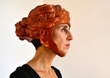 Ya se puede visitar la muestra de esculturas, fotos y cascos femeninos en galería Calvaresi, Defensa 1136, hasta el sábado 8 de mayo.