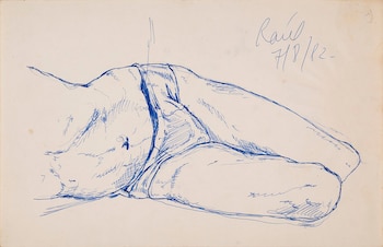 Presentadas a lo largo de diferentes núcleos temáticos, las obras exhibidas incluyen pinturas, collages y dibujos que el artista realizó entre 1978 y 1982, bajo la influencia de movimientos de vanguardia como el surrealismo y de artistas como Jean Dubuffet, Libero Badii y René Magritte. También puede verse una serie de trabajos protagonizados por sujetos masculinos, creados a fines de la década de 1980, que recupera aspectos de la pintura metafísica de Giorgio de Chirico o Lino Enea Spilimbergo: horizontes lejanos, perspectivas exacerbadas y rebatidas.