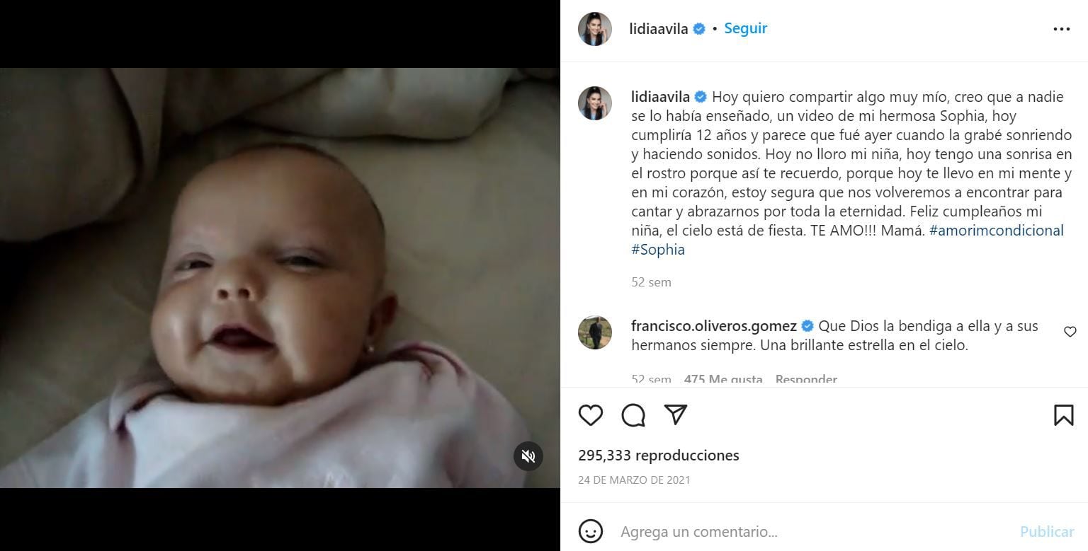 Am 24. März teilte Lidia Ávila ein unveröffentlichtes Foto ihres Babys Sophia, das ihre erste Tochter war und einige Monate nach ihrer Geburt verstarb.