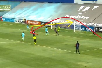 63 Minuten nach Spielbeginn erzielte Sporting Cristal das vierte Tor gegen San Martín aus seinem eigenen Feld, nachdem der Mittelfeldspieler Leandro Sosa den „heiligen“ Angriff abgeschnitten hatte.