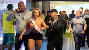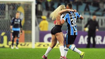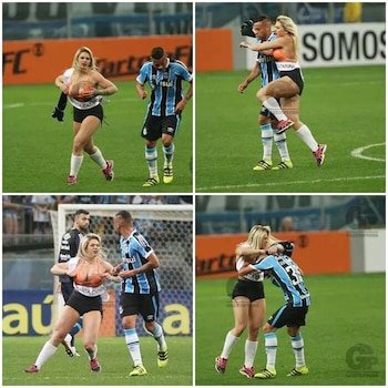 Ocurrió en el final del juego que protagonizaban Gremio y Palmeiras por el Brasileirao. Morais, candidata a Miss Bumbum 2016 en representación del Estado de Santa Catarina, no dudó en invadir la cancha e ir a abrazar a un jugador de Gremio, su equipo favorito.