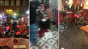 Dos hombres identificados con el conjunto de Turín fueron apuñalados (un italiano y un belga), mientras que el tercero fue un español que terminó con múltiples traumatismos en su cabeza y cuerpo. Las imágenes del pub en el que se hallaban y transcurrieron parte de los hechos evidencian el descontrol total que produjeron.