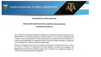Atento en consecuencia que este fin de semana comenzarán los torneos de Primera, Primera B, Primera C, Primera D, la Asociación del fútbol Argentino recuerda que establecen sus Reglamentos sanciones para aquellos equipos que no presenten sus respectivos equipos en los días y horarios oportunamente designados", anunciaron a través del comunicado.