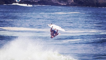 El sueño de desafiar las olas en Mar del Plata tiene un referente a la vuelta de la esquina. Martín Passeri, oriundo de La Felíz, es el nombre que guía a decenas de niños, jóvenes y adultos a la aventura de, mar adentro, balancearse sobre una tabla. "Hice a mi cuerpo amigo del cielo y la distancia, y me fui a buscarle una verdad a mi corazón…", dice La Renga en su canción Hablando de la Libertad y acaso ese traje dibujado por las palabras sea el que mejor le queda al argentino que fue cinco veces campeón nacional cuando se dispone a deslizarse sobre las masas de agua salada.