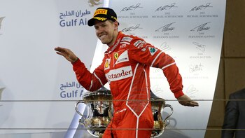 Finalmente el piloto de Ferrari Sebastian Vettel llegó a su victoria número 44 y se quedó con el primer lugar en Barhein seguido por el británico y el finlandés de Mercedes.