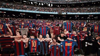 La cabecera del estadio tuvo una imagen que se repitió entre cada fanático. Con la camiseta en alto y las miradas perdidas en el horizonte, Messi vio tras su primer tanto ante el Osasuna cómo su ya histórico festejo ante el Real Madrid se repitió por miles entre los simpatizantes catalanes.