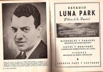 Pepe ya tenía 38 años. Un hombre "demasiado" grande para la época. Y un pasado intenso. Había sido boxeador, empresario, director técnico y manager de boxeadores como Justo Suárez, el "gran ídolo de la afición", entre otros. A él refiere Julio Cortázar en su célebre cuento "El Torito", cuando habla del "Patrón". Pepe Lectoure era socio de Ismael Pace, quien soñó un Luna Park para espectáculos en Buenos Aires. Luna Park significaba en Italia algo así como "Parque de Diversiones". Y desde la calle Rivera se fueron a Corrientes 1065, entre Carlos Pellegrini y Cerrito.