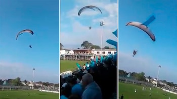 Huracán y Central se encontraban disputando el clásico de la ciudad de Goya cuando un fanático del conjunto local apareció sobrevolando en parapente el campo de juego.
