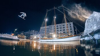 Mientras la mayoría de la población nórdica duerme en las blancas noches de Escandinavia, el deportista Ettala trabaja en la preparación de su nuevo truco. La jornada le permite transformar a la capital de Finlandia en su parque de recreo, un paraíso para el snowboard.