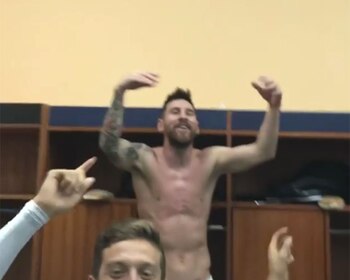 La Pulga, quien suele ser muy medido en sus expresiones, fue uno de los más exaltados durante los festejos privados en el camarín. El rosarino se sumó a los cánticos con una enorme sonrisa y, parado en un banco y golpeando los armarios, cerró su gran noche con sus compañeros, quienes registraron todo con sus celulares y lo compartieron en las redes sociales.