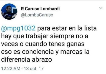 El técnico, que se sumó a Twitter hace unos pocos meses atrás, no dudó en salirle al cruce fiel a su estilo: "Para estar en la lista hay que trabajar siempre, no a veces o cuando tenés ganas. Eso es conciencia y marcás la diferencia. Abrazo".