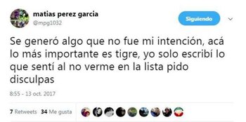 Se generó algo que no fue mi intención, acá lo más importante es tigre, yo solo escribí lo que sentí al no verme en la lista pido disculpas