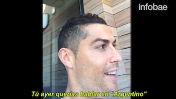 En una de las historias de Instagram el portugués cometió un error al intentar hablar "en argentino" y Cristiano Jr, el más grande de sus tres hijos, lo corrigió al instante.