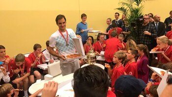 Es que Roger observa a los chicos y se siente identificado: estuvo ahí. Durante esta semana, se hizo viral el video de un adolescente Federer recibiendo la medalla por su participación de manos del alemán Michael Stichm campeón en 1993 tras superar en la final al sueco Stefan Edberg. Pues bien, hoy, por octava vez en su prolífica carrera, le tocó a él entregarles el reconocimiento a los chicos. Claro, la leyenda suiza le agrega un bonus track: pizzas para todos.