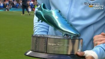 Agüero, de 29 años, ya es uno de los máximos ídolos de la historia del City. Y quedó comprobado en la previa del encuentro frente al Arsenal. El "Kun" recibió un reconocimiento reconfortante. La hija de Erik Brook, el anotador al que el "Kun" superó, le entregó un premio por el hito alcanzado. Se trata de un botín de vidrio azul sobre una plataforma que que tiene el escudo del club y, alrededor de la misma, aparecen descriptos cada uno de sus gritos en el "Man Blue". Por supuesto, en el frente de la misma, aparece en letras grandes el nombre del futbolista surgido en Independiente.
