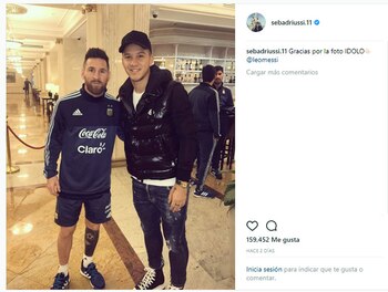 Uno de los que se acercaron hasta el hotel donde se hospeda el contingente albiceleste es Sebastián Driussi, quien milita en el Zenit ruso. El ex delantero de River le pidió una foto a Lionel Messi y luego la subió a su cuenta de Instagram con un mensaje: "Gracias por la foto, ídolo".