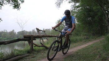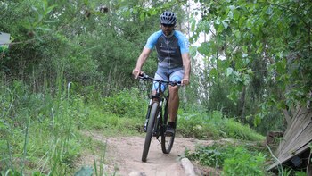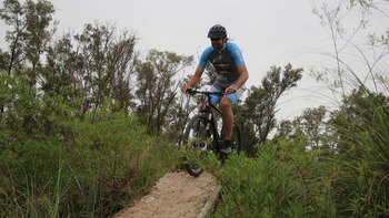 "Estoy más nervioso que cuando me tocó tirar libres en la final del Mundial". Fabricio Oberto llega hasta la cima de una bajada de 5 metros y se detiene. Al cordobés le encantan las nuevas experiencias y está disfrutando del entrenamiento en bicicleta, pero sabe que no está en su ámbito. Tiene claro que trepar, bajar, doblar y acelerar en un circuito exigente de mountain bike no son tareas sencillas cuando uno mide 2m08 y pesa 112 kilos. Por eso primero analiza el descenso y después, luego de recibir consejos, analizar peligros y respirar profundo, se anima a bajarla mientras lanza un "wow" como grito de éxito y felicidad. Así vivió el campeón olímpico una hora a pura adrenalina como parte de la preparación para cumplir la misión de subir el Aconcagua (2 de febrero) con un grupo de deportistas que han superados complejos problemas de salud.