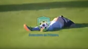 Una persona, que se ve claramente en el inicio del video, recibió una dura golpiza, quedó inconsciente en la cancha y debió ser trasladado en ambulancia.