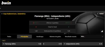 Si uno se sitúa sólo en el partido de vuelta la cuestión cambia notoriamente. También si se llega a la prórroga o a los penales. BET365 paga un triunfo del Flamengo 1.75 y una victoria de Independiente 5.50 (3.40 por el empate). Mientras que para BWIN si el equipo local gana paga 1.65 y si lo hace el conjunto visitante 5.75 (3.10 por el empate).