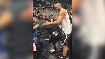Emanuel Ginóbili tuvo un nuevo gesto para destacar con un grupo de hinchas argentinos en la previa del partido que San Antonio Spurs disputó ante Philadelphia 76ers. en el AT&T Center. A pesar de estar lesionado y de no poder jugar, el bahiense se tomó unos minutos para oficiar de anfitrión, saludar uno por uno a sus compatriotas y hasta revelarles cuándo volverá a las canchas.