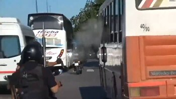 En el momento en el que sucedió el hecho, el transporte con los fanáticos de San Lorenzo se encontraba detenido a un costado de la avenida para permitir el paso del micro con los jugadores que conduce Guillermo Barros Schelotto. Las imágenes, captadas por TyC Sports, que acompañaba el trayecto del conjunto de La Ribera, muestran cómo los hinchas del Ciclón cantan contra el Xeneize, pero no se observa una agresión física ni tampoco el lanzamiento de proyectiles. Allí, uno de los policías que antecedía la marcha del ómnibus en motocicleta roció con gas pimienta a los Cuervos.