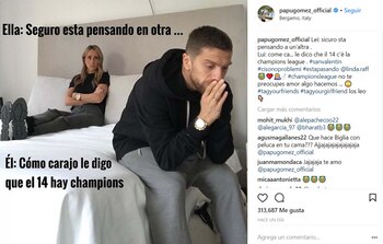 En ocasión de los compromisos de la Liga de Campeones de mañana, justo un 14 de febrero (Día de los Enamorados), el futbolista argentino que milita en el Atalanta posó y personalizó su propio meme: "Cómo carajo le digo que el 14 hay Champions".
